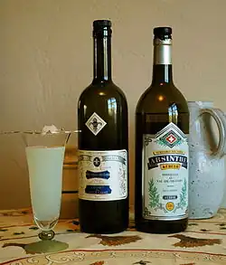 - ↑ Décret no 88-1024 du 2 novembre 1988 portant application de la loi du 16 mars 1915 relative à l'interdiction de l'absinthe et des liqueurs similaires, fixant les caractères des liqueurs similaires de l'absinthe.