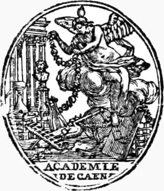 - ↑ Louis XIV, Lettres patentes avec les statuts pour l'Académie des belles-lettres établie en la ville de Caen. [Enregistrées au Parlement de Normandie le 17 février 1705.], (lire en ligne)