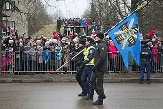 Le drapeau de l'académie pendant un défilé du jour de l'indépendance.