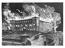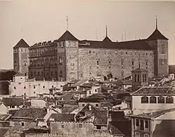 L’effroyable incendie qui ravagea l’Alcazar de Tolède le et qui n’en laissa debout que les murs latéraux et la galerie de colonnes, bouleversa la vie de l’Académie. Les élèves eurent la présence d’esprit d’évacuer les fûts de poudre et les munitions emmagasinés dans l’une des tours d’angle du bâtiment. Les cadets trouvèrent à se reloger dans le palais Santa Cruz, tandis que les cours allaient désormais se donner dans le couvent des capucins[16],[11].
