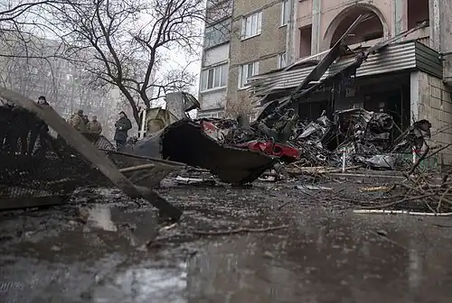 - ↑ Gaétan Powis, « Crash d'hélicoptère à Kiev : décès du ministre des Affaires internes Denys Monastyrsky », sur Air et Cosmos, (consulté le ).