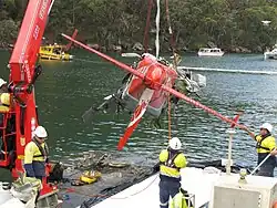 - ↑ (en) « Hawkesbury River seaplane crash: Six people killed after aircraft goes down near Cowan » [« Crash d'un hydravion sur le fleuve Hawkesbury : six personnes tuées après l'écrasement d'un avion près de Cowan »], sur abc.net.au, ABC News (Australie), (consulté le ).