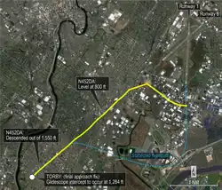 L'aéroport de Teterboro possède deux pistes, la 1/19 et la 6/24. Dans des conditions de vent normales, les avions voleraient face au vent et atterriraient sur la piste 6. Le 15 mai, cependant, le vent soufflait du nord-ouest, ce qui a créé des conditions favorables pour un atterrissage sur la piste 1. En raison de la présence d'autres aéroports internationaux sur la trajectoire de la piste 1, les avions qui prévoyaient d'atterrir sur cette piste devaient effectuer une approche dite « circulaire » (Circle-to-Land). Cette approche implique l'utilisation du signal du système d'atterrissage aux instruments (ILS) pour la piste 6, puis d'effectuer un virage à droite par rapport au MetLife Stadium pour finalement s'aligner sur la piste 1.