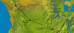 Trajectoire de vol de l'avion de Hammarskjöld (ligne rose) et du leurre (ligne noire), septembre 1961.
