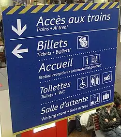 1. Délégation à l'accessibilité et aux voyageurs handicapés, « L'accessibilité de la signalétique en gare », sur www.accessibilite.sncf.com, (consulté le ).