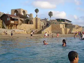 Structures restantes d'Az-Zīb (aujourd'hui une zone de loisirs), y compris sa mosquée, en 2009.