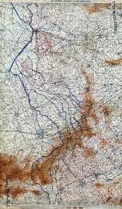 Carte montrant la topographie et les emplacements dans le district d'Ypres, détaillant les avancées britanniques et françaises à Ypres, 1917