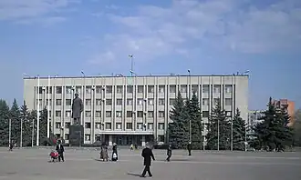 - ↑ Dans le cadre de la loi sur la « décommunisation » votée par le parlement ukrainien le 9 avril 2015, la place de la Révolution d'Octobre à Sloviansk a depuis été renommée Place de la Cathédrale, et la statue de Lénine a été déboulonnée.