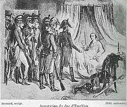 Le , un détachement d'un millier d'hommes[3] du 22e de dragons (dont son colonel, Jean Augustin Carrié de Boissy) franchit le Rhin à Rhinau, se dirige vers Ettenheim, à 10 km de la frontière, et enlève le duc. Celui-ci est enfermé à Strasbourg, puis transféré à Vincennes, où il arrive le .