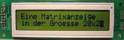 Un écran LCD classique à matrice de points 5×7 utilisé dans certains des premiers téléphones portables et dans certains distributeurs automatiques.