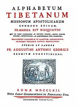 - Alphabetum tibetanum missionum apostolicarum commodo editum : præmissa est disquisitio, qua de vario litterarum ac regionis nomine, gentis origine, moribus, superstitione ac manicheismo fuse disseritur, Beausobrii calumniæ in sanctum Augustinum, aliosque Ecclesiæ patres refutantur, Rome, 1762, 1 vol. in-4°, figures. Giorgi profita, pour composer cet ouvrage, des matériaux envoyés au collège de la Propagande par les missionnaires capucins du Tibet, et entre autres par les Pères Francesco della Penna et Cassiano da Macerata. La figure des caractères avait été donnée par le P. Francesco della Penna ; Antonio Fontaviti les avait gravés en 1758 ; le cardinal Luis Belluga les fit fondre pour la société de la Propagande. Après avoir donné l'alphabet, Giorgi s'occupe de l'orthographe des mots, et de la syntaxe, et appuie tous les exemples sur les extraits des manuscrits tibétains découverts en 1721, près des sources de l'Irtych, publiés d'après les ordres de l'empereur Pierre Ier, par les soins de F. S. Bayer, et insérés dans les Acta Eruditorum de Leipzig, et, avec une traduction française de Fourmont, dans le Museum sinicum de Bayer. Aidé de la connaissance de plusieurs langues qui lui semblent présenter entre elles une sorte d'affinité, Giorgi trouve que ces manuscrits ne contenaient que des fragments de lois ; il essaye d'en donner une nouvelle traduction, qu'il accompagne d'un commentaire explicatif, et se hasarde d'en traduire pour la première fois la partie inédite. Le tout est précédé d'une histoire littéraire de la langue tibétaine en Europe, et d'une planche où sont représentés les instruments à écrire en usage au Tibet. Giorgi offre aussi au lecteur l'oraison dominicale, la salutation angélique, le symbole des apôtres et les dix commandements de Dieu en tibétain, et la traduction en latin de privilèges accordés aux missionnaires catholiques par le gouvernement du Tibet. Il avait eu d'abord le dessein de se borner à faire entrer dans son livre tout ce que l'on vient de passer en revue et qui suffit pour la connaissance de la langue. Une circonstance lui fit changer son plan : voyant que les Tibétains regardaient leur alphabet comme une chose divine, et les lettres qui le composent comme une émanation de la divinité, il pensa qu'il devait commencer par exposer les preuves sur lesquelles reposait ce sentiment ; c'est à quoi il emploie la première et la plus considérable partie de son livre. Il commence par donner l'étymologie du mot Tibet, et les recherches auxquelles il se livre pour la trouver lui fournissent l'occasion de faire l'histoire de Xaca, prophète et législateur des Tibétains, de présenter la chronologie des rois du Tibet et des grands lamas, d'y joindre la géographie de ce royaume, et le journal d'un voyage du Bengale au Tibet ; enfin de traiter de la cosmogonie et du cycle, et d'expliquer la formule religieuse des Tibétains. Le tout est terminé par une oraison fervente adressée à Dieu pour leur conversion. Giorgi avoue, à la fin de sa préface, que le grand nombre des lamas ou moines tibétains et le crédit dont ils jouissent rendent cette œuvre très-difficile ; mais il ajoute que les missionnaires chrétiens ne doivent pourtant pas en désespérer, et que les erreurs du manichéisme faisant le fond de la religion du pays qu'ils ont à convertir, ils doivent surtout se livrer à l'étude des œuvres de Saint-Augustin, où ils puiseront les meilleurs arguments pour combattre l'erreur. Mais à quoi peut servir le travail de Giorgi ? Son érudition n'est pas seulement confuse et superflue ; elle est encore vaine et mensongère. Il prouve ordinairement toute autre chose que ce qu'il avance, et le seul objet qu'il semble avoir eu en vue, c'est d'entasser dans chaque page des textes de toutes langues, coptes, tibétains, grecs, anciens, modernes, etc., sans choix, sans critique, sans nécessité. On doit, en le lisant, s'attacher à démêler soigneusement ce qui est de lui, pour n'en tenir aucun compte, et les documents venus du P. Francesco della Penna et des autres missionnaires du Tibet, documents authentiques et précieux, mais que Giorgi a malheureusement embrouillés, défigurés, tourmentés, pour les ramènera son système. Son parallèle du manichéisme et du lamisme, outre la puérilité des étymologies et la tournure forcée de ses rapprochements, pèche encore par le fond, en ce qu'il donne une idée tout à fait fausse de la doctrine indo-tibétaine. Quant à l'alphabet, Giorgi a tiré un si mauvais parti des matériaux qu'il a mis en œuvre, qu'on ne peut, avec le volumineux traité qu'il lui consacre, lire correctement une seule syllabe tibétaine. Pour se former une idée juste du système orthographique de cette langue, il faut oublier tout ce qu'a dit Giorgi ou son abréviateur Amaduzzi, et s'en tenir à ce qu'on en lit d'après le P. Domenico da Fano, dans l'ouvrage de Deshautesrayes. Enfin, il est démontré pour nous que Giorgi, en écrivant sur le tibétain, n'en connaissait pas même les lettres, et c'est un fait curieux pour l'auteur d'un Alphabet de 900 pages[1]. Ainsi l'on doit savoir gré aux savants qui ont fouillé dans ce chaos pour en tirer ce qui pouvait intéresser le plus grand nombre des lecteurs. J. N. Eyring publia en allemand, dans les tomes 5, 6 et 7 de la Bibliothèque historique de Gatterer, des extraits considérables de l'Alphabetum tibetanum. Fabri en a inséré de plus amples, mais qui n'ont pas eu de suite, dans son Recueil de géographie et de voyages, Halle, 1783, in-8°, en allemand, avec figures. Il faudrait peu de chose pour compléter ce travail, qui serait facilité par une table des matières, très-étendue, placée à la fin de l'Alphabetum tibetanum. L'Histoire de la Chine, de Duhalde, les Lettres édifiantes, les Voyages de Bogie et de Turner, le morceau donné sur le Tibet par Pallas, dans ses Mélanges sur le Nord et traduit par Beuilly, 1 volume in-8