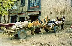 Jean Dif, après un voyage au Tibet en septembre-, écrit que si la traction animale y est toujours utilisée, on trouve aussi de petits tracteurs, des batteuses, etc., dans les villages[37].