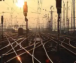 Les grandes gares (ici, celle de Francfort) sont généralement dotées de nombreux aiguillages.
