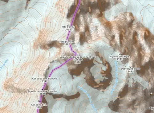 - l'aiguille Nord ou « tête Blanche » (3 892 mètres),