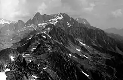 - l'aiguille du Belvédère (2 965 mètres) point culminant du massif ;