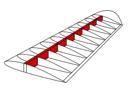 - aérofreins (AF) ou spoilers. Les spoilers peuvent être utilisés asymétriquement (d'un seul côté) pour contrôler le roulis.