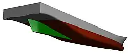 - Sur une planche de raceboard, participe au plan anti-dérive avec la dérive et les cares.