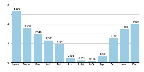 Le débit instantané maximal a été de 321 m3/s le , la hauteur maximale instantanée de 402 cm soit 4,02 m le et le débit journalier maximal de 239,0 m3/s ce même .