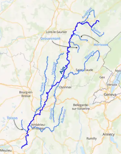 La rivière arrose Champagnole et Pont-d'Ain.