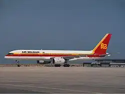 La livrée originale des avions B757 / B737-400 / B737-300 d'Air Belgium était composée de titres AIR BÉLGICA noirs et de rayures jaunes et rouges (sur le haut et le côté fuselage / queue blancs), le noir-jaune-rouge étant les couleurs du drapeau national de la Belgique.