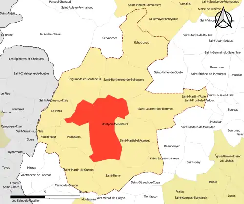 Localisation de l'aire d'attraction de Montpon-Ménestérol dans le département de la Dordogne | |
