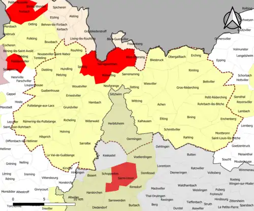 - ↑ « Aire d'attraction de Sarreguemines (partie française) - Code officiel géographique », sur insee.fr (consulté le ).
