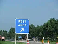 Généralement, une aire de service est présignalisée à 10, 5 et 1 miles (16, 8 et 1,6 km) ainsi qu'à l'aire de service précédente.