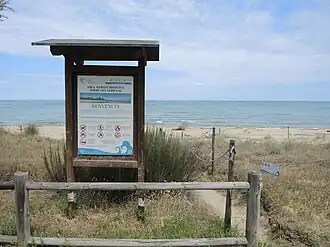 Le milieu dunaire de l'aire marine est caractérisé par la présence du pluvier à collier, qui arrive dans ces endroits au printemps pour nicher, puis repart en automne. Le milieu marin est en revanche peuplé de palourdes communes, de daurades, de bars communs et surtout du rare mollusque gastéropode Trivia adriatica.