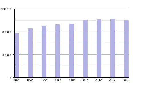 L'évolution démographique ci-dessous concerne l'aire urbaine selon le périmètre défini en 2010.