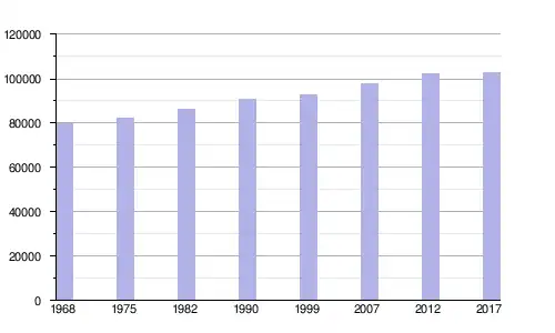 L'évolution démographique ci-dessous concerne l'aire urbaine selon le périmètre au .