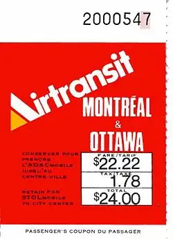 - ↑ « Création d'Airtransit Canada pour assurer la liaison par ADAC entre Montréal et Ottawa », La Presse, , p. C1 (lire en ligne)