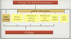 Ajiva est un terme utilisé dans le jaïnisme et sa cosmographie pour caractériser les substances non-vivantes. Les ajivas sont le contraire des jivas: les êtres qui ont une âme. Les ajivas sont de deux types: avec des formes comme les pierres; et sans forme comme l'espace, la lumière. Jivas et ajivas composent l'univers jaïn dans son stade médian, entre les démons et les dieux[1].
