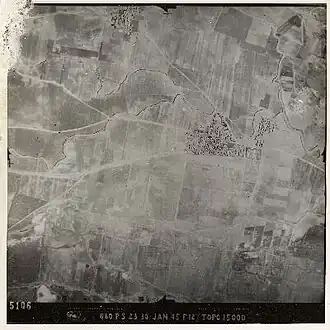 - ↑ « The village houses have been completely leveled. Much of the resulting debris has been pushed together in heaps along the northern edge of the site. The only structure remaining was the partially collapsed church ».