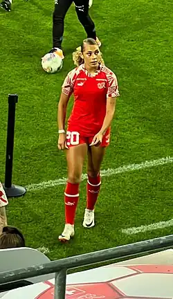 Quelques semaines plus tard, elle est convoquée pour la première fois en équipe de Suisse A pour un match amical contre le Danemark le dans le cadre des préparations à la Coupe du monde 2023[24]. La Suisse perd (2-1) et son sélectionneur Nils Nielsen qui prend part à son dernier match à la tête de la Nati, ne lui donne pas de temps de jeu[25].