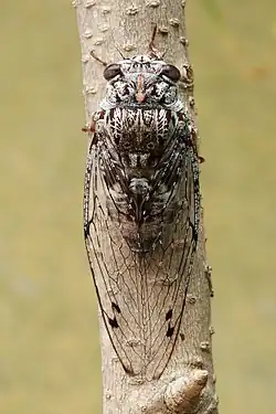 , lire en ligne [archive du ], consulté le ). - ↑ (en) David C. Marshall, Max Moulds, Kathy B. R. Hill, Benjamin W. Price, Elizabeth J. Wade, Christopher L. Owen, Geert Goemans, Kiran Marathe, Vivek Sarkar, John R. Cooley et Allen F. Sanborn, « A molecular phylogeny of the cicadas (Hemiptera: Cicadidae) with a review of tribe and subfamily classification », Zootaxa, vol. 4424, no 1, , p. 1–64 (ISSN 1175-5334, PMID 30313477, DOI 10.11646/zootaxa.4424.1.1, lire en ligne [archive du ], consulté le ).