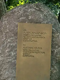 - (de) Cet article est partiellement ou en totalité issu de l’article de Wikipédia en allemand intitulé « Alexandar Fol » (voir la liste des auteurs).