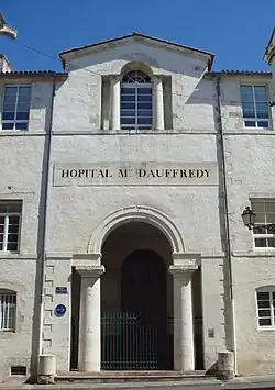 - ↑ « Hôpital Saint-Barthélemy puis Couvent-Hôpital des Charitains puis Hôpital Aufrédy - Dossier inventaire », notice no IA17000176, sur la plateforme ouverte du patrimoine, base Mérimée, ministère français de la Culture