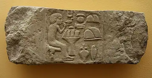 - ↑ Damien Agut, « Manger pour se régénérer dans la civilisation pharaonique », dans : Florent Quellier (dir.), Histoire de l'alimentation : de la Préhistoire à nos jours, Paris, Belin, 2021, p. 151-153.
