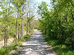 Une simple bande enherbée, tondue plus régulièrement qu'ailleurs, peut constituer une allée appréciée, en sous-bois, sur le bord d'un cours d'eau, entretenant mieux les fonctions de corridor biologique qu'un chemin de halage en dur.