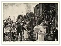 Le militarisme ne fait pourtant pas l'unanimité. Le centenaire de la « guerre de libération » de 1813 contre Napoléon donne lieu à de grandes démonstrations de patriotisme qui culminent avec l'érection du monument commémoratif de la bataille de Leipzig, mais, la même année, Guillaume II, qui célèbre le 25e anniversaire de son avènement, est acclamé comme « l'empereur de la paix[22] ».