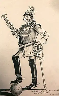 Le goût de Guillaume II pour les parades militaires et ses déclarations spectaculaires sur la gloire prussienne et la mission providentielle de l'Allemagne suscitent la verve des caricaturistes, ainsi que la réticence de l'opposition prussienne et des États du sud de l'Allemagne, dont la Bavière, mais semblent mieux accueillis par les junkers de l'Est et par les classes populaires[17]. Les idéologies du nationalisme allemand, du pangermanisme et du darwinisme social, présentant la guerre comme une condition de survie des nations, et elles ont une assez large audience dans la société allemande, notamment dans les élites dirigeantes et les milieux intellectuels.