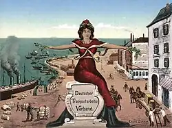 Le volume des exportations triple entre 1890 et 1913[4]. La législation sociale de Bismarck, mise en place entre 1883 et 1889, garantit la paix sociale et un relatif bien-être[6]. La période d'avant-guerre est aussi caractérisée par la forte montée du syndicalisme, de culture marxiste et républicaine mais, en pratique, beaucoup plus réformiste que révolutionnaire, et qui participe à la gestion des assurances sociales : il est partagé entre trois courants, l'Association libre des syndicats allemands (FVdG) d'inspiration anarcho-syndicaliste, les syndicats libres proches de la social-démocratie et présidés par Carl Legien, qui atteignent 2 574 000 membres en 1913, et les syndicats chrétiens qui comptent 343 000 membres en 1913[7], mais dont la croissance est limitée par l'encyclique Singulari Quadam de Pie X, défavorable à la coopération avec les non-catholiques[8].
