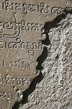- ↑ Michel Antelme, « Inventaire provisoire des caractères et divers signes des écritures khmères pré-modernes et modernes employés pour la notation du khmer, du siamois, des dialectes thaïs méridionaux, du sanskrit et du pâli » [PDF], Corpus des inscriptions khmères, (consulté le ), p. 4.
