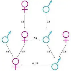- un coefficient entre une ouvrière et sa fille hypothétique r=0,5