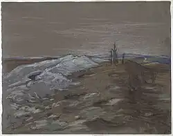 Son œuvre se caractérise par des desseins fermes, des tons chromatiques, des formes solides et une exécution réfléchie. L'horizon lointain n'est jamais montré mais suggéré par des nuances de couleurs et des transitions subtiles d'ombres fluides[2]. Son but n'est pas tant de copier la nature mais d'être en harmonie avec elle. Ses peintures ne sont pas des études ethnologiques représentant les rythmes agraires et les campagnards, mais il tente plutôt de retrouver l'atmosphère contemplative de sa terre natale. Grâce à ses compositions il réussit à évoquer un sentiment, une ambiance particulière. Il crée un équilibre dans ses compositions qui communiquent la sérénité et la vision attentive de l'artiste. Il exprime dans ses œuvres la beauté simple des lieux de son enfance.