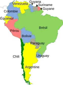 En Amérique du Sud, on distingue plusieurs sous-régions : les États andins, les Guyanes, le cône Sud et le Brésil.