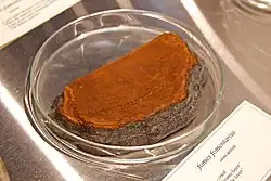 - ↑ De haut en bas de l'image : briquet historique en acier (copie), silex, amadou, minerais de fer (pyrite, marcassite).