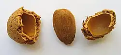 | 1 graine, « amande » comestible (ou amandon), entouré d’un tégument brun | ||