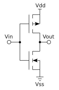 Technologiquement, la valeur de cette résistance est modifiée en changeant la largeur de la grille du PMOS ou du NMOS de façon à changer le rapport [1].