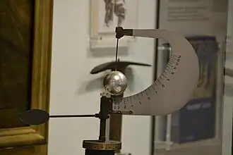 Si cette sphère est fixée à une tige comme un pendule, et présentée à un vent de vitesse , le pendule ainsi constitué prendra une position d'équilibre à un angle par rapport à la verticale de sorte que la force du vent sur la sphère en compense le poids .